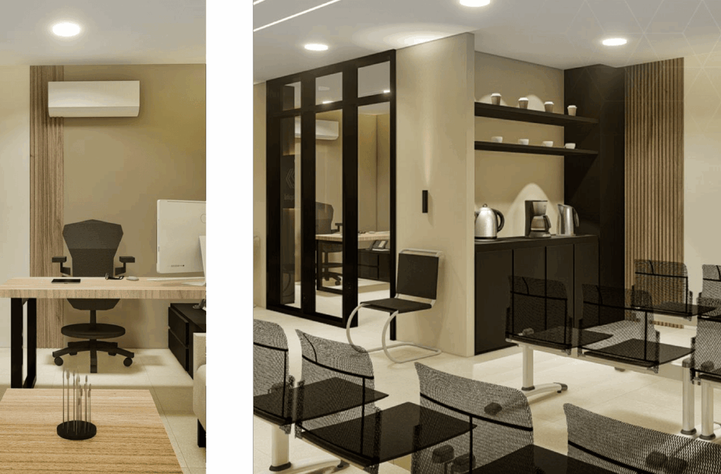 Our vision was to engineer a space that feels professional, secure, and streamlined—prioritizing client privacy, smart layout configuration, and high-end finishes. Despite the compact footprint, the design maximizes usability, creating an environment that fosters trust and facilitates smooth business transactions without a sense of confinement.